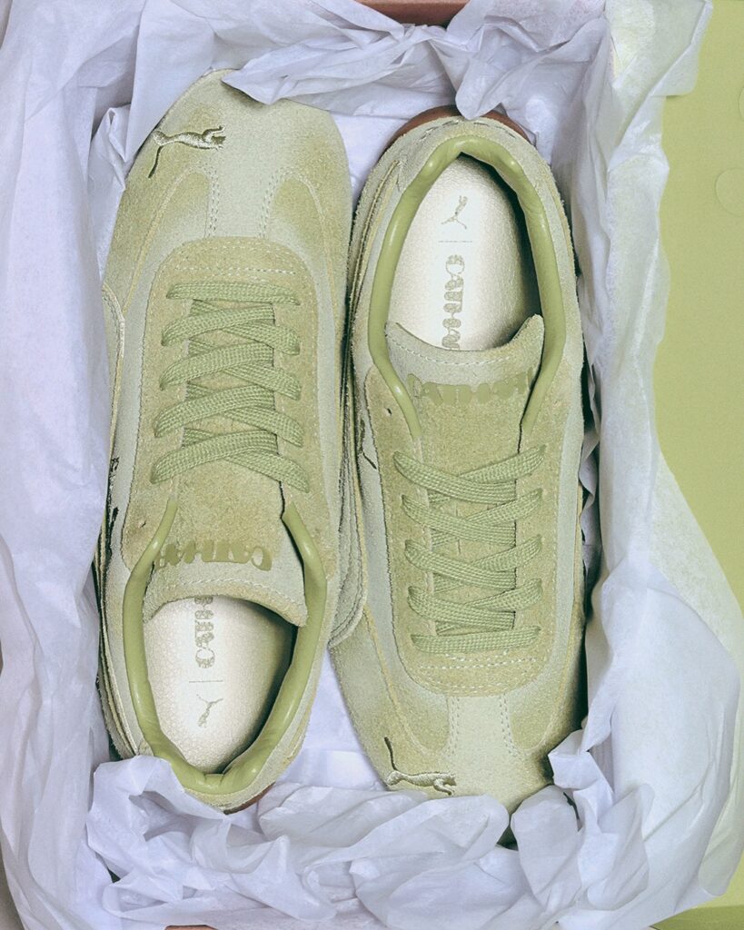 Já o Speedcat Washed “Pistachio Green” trabalha a ideia de desgaste controlado. O acabamento lavado suaviza a silhueta originalmente ligada ao automobilismo e aproxima o modelo do cotidiano, enquanto a cor diluída reforça essa transição do esportivo para o urbano. São escolhas de material e tratamento que falam de tempo e uso, não de impacto imediato.
